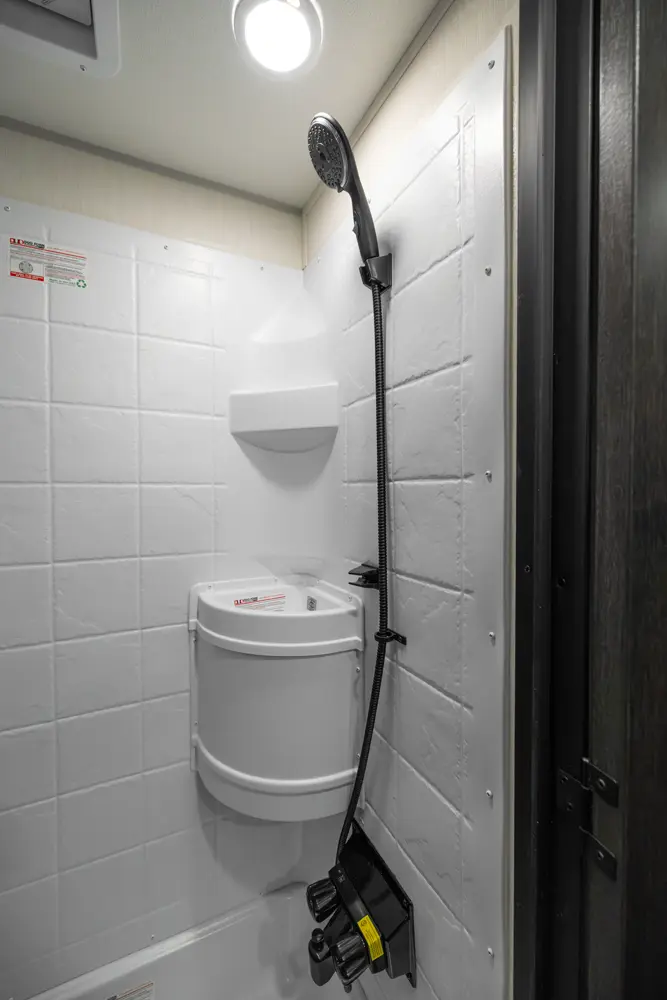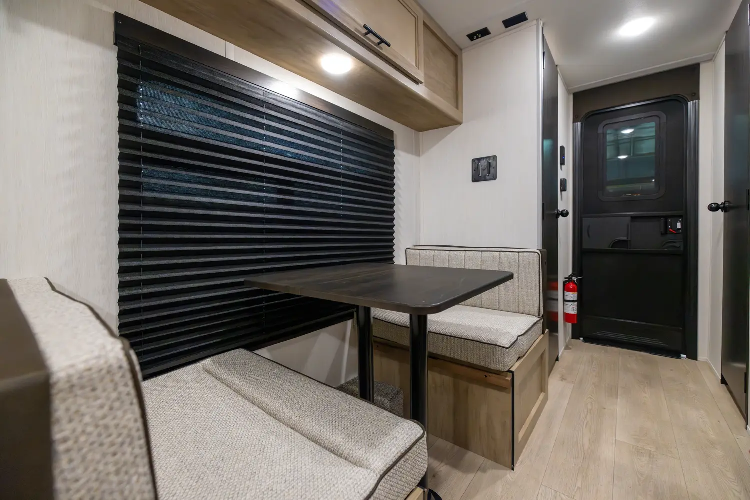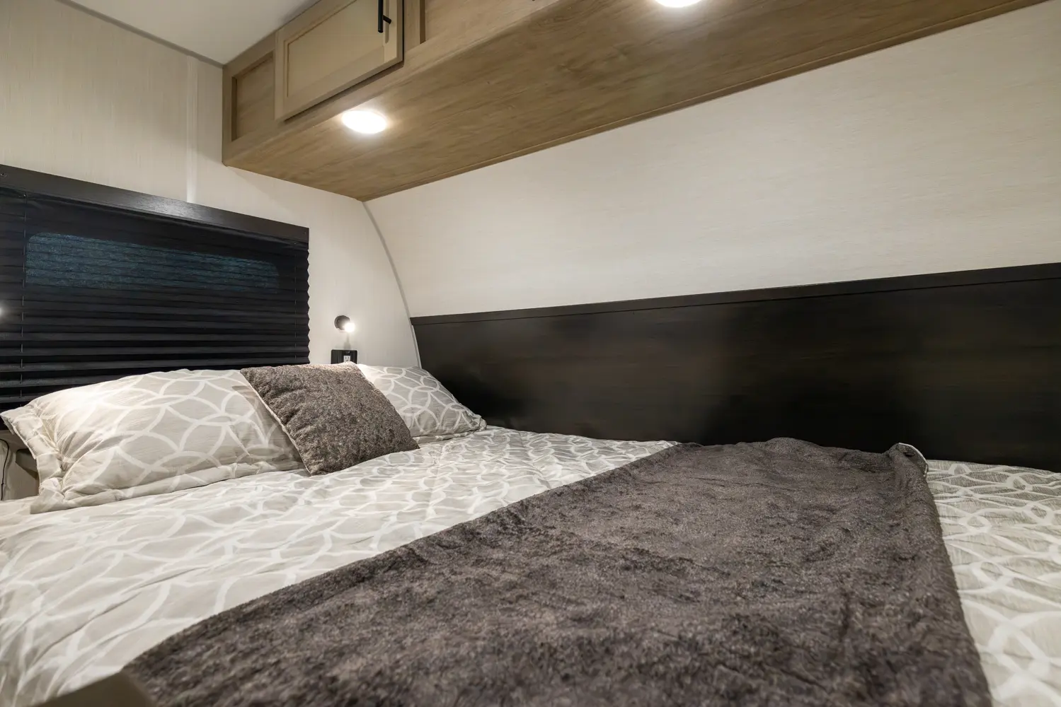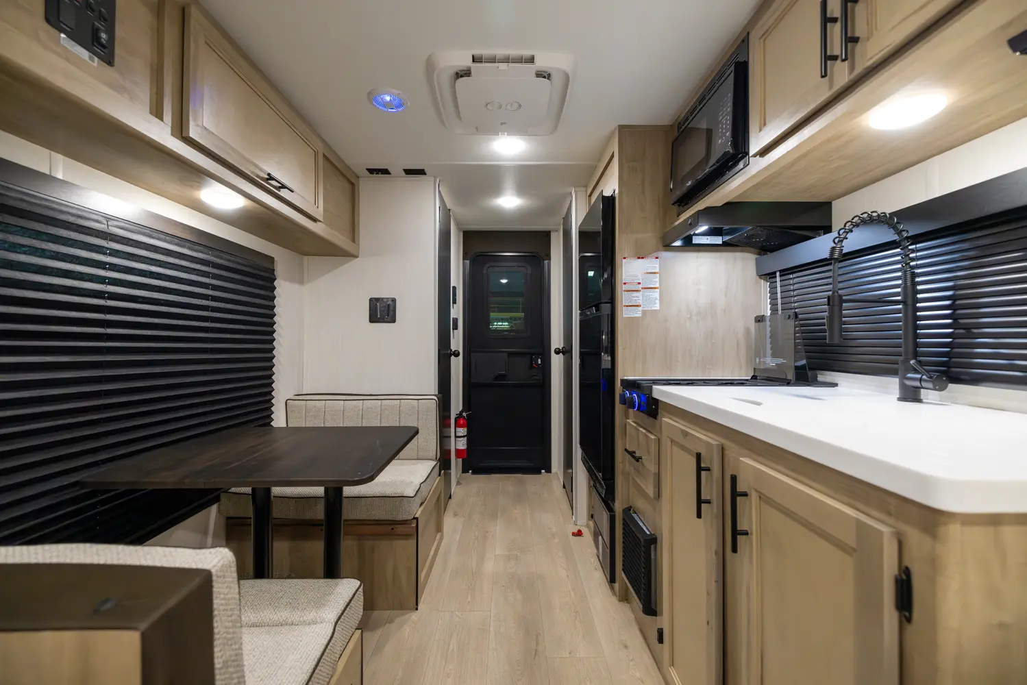 This 19’ travel trailer packs a lot of features in a small space. The rear entry design creates a split bath that allows you to use bath facilities simultaneously. Despite the trailers size nothing is lost in the kitchen which features a flush mount glass cook top, huge sink, ample counter space, and a segment leading 10.3 cu.ft. double door refrigerator.