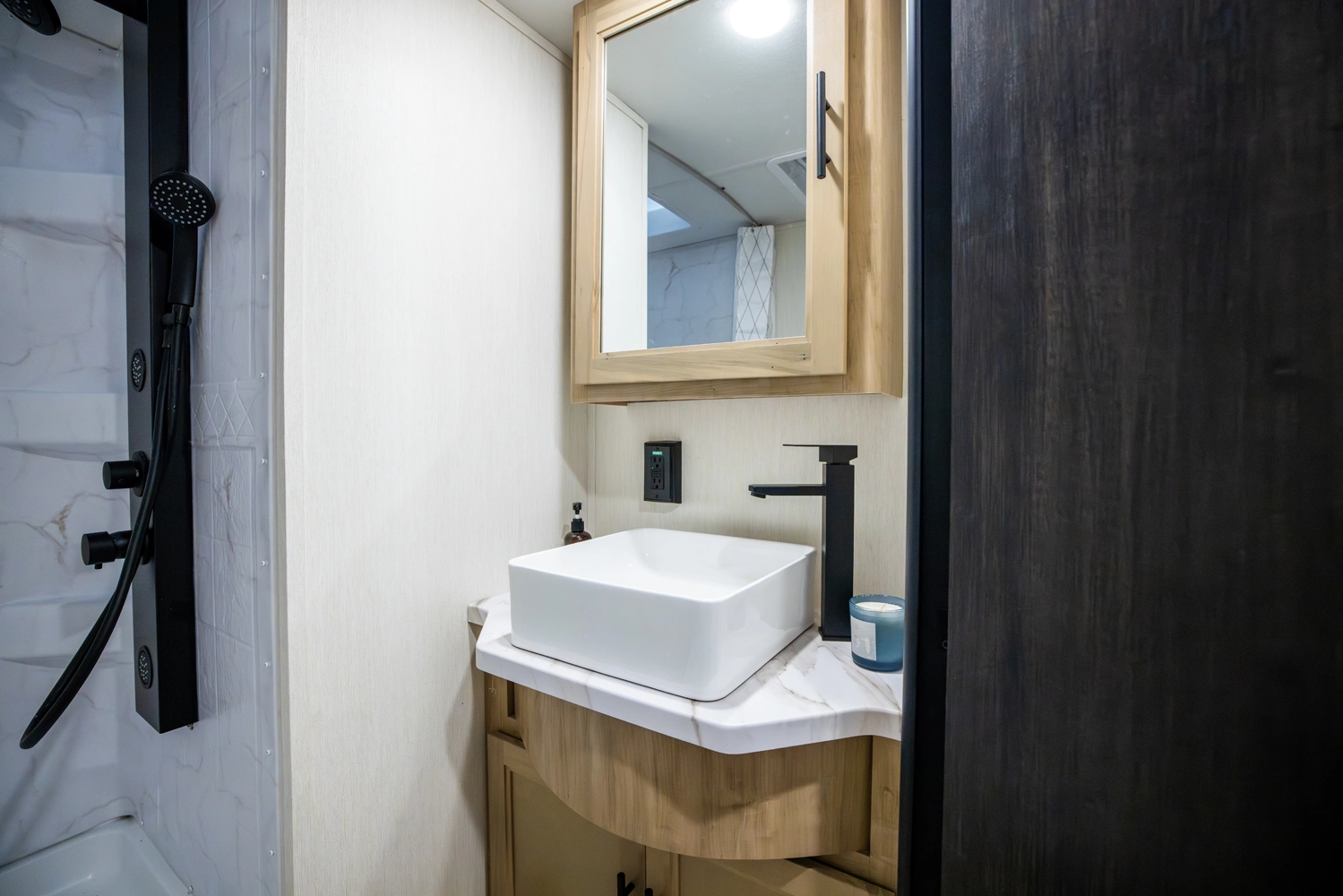 The Black Label version of the Grey Wolf 27LH is an intelligently designed entry level travel trailer designed for modern camping. Notable Black Label upgrades include fiberglass gel coated side walls, frameless windows, thermos-foil arctic insulation and solid surface countertops.