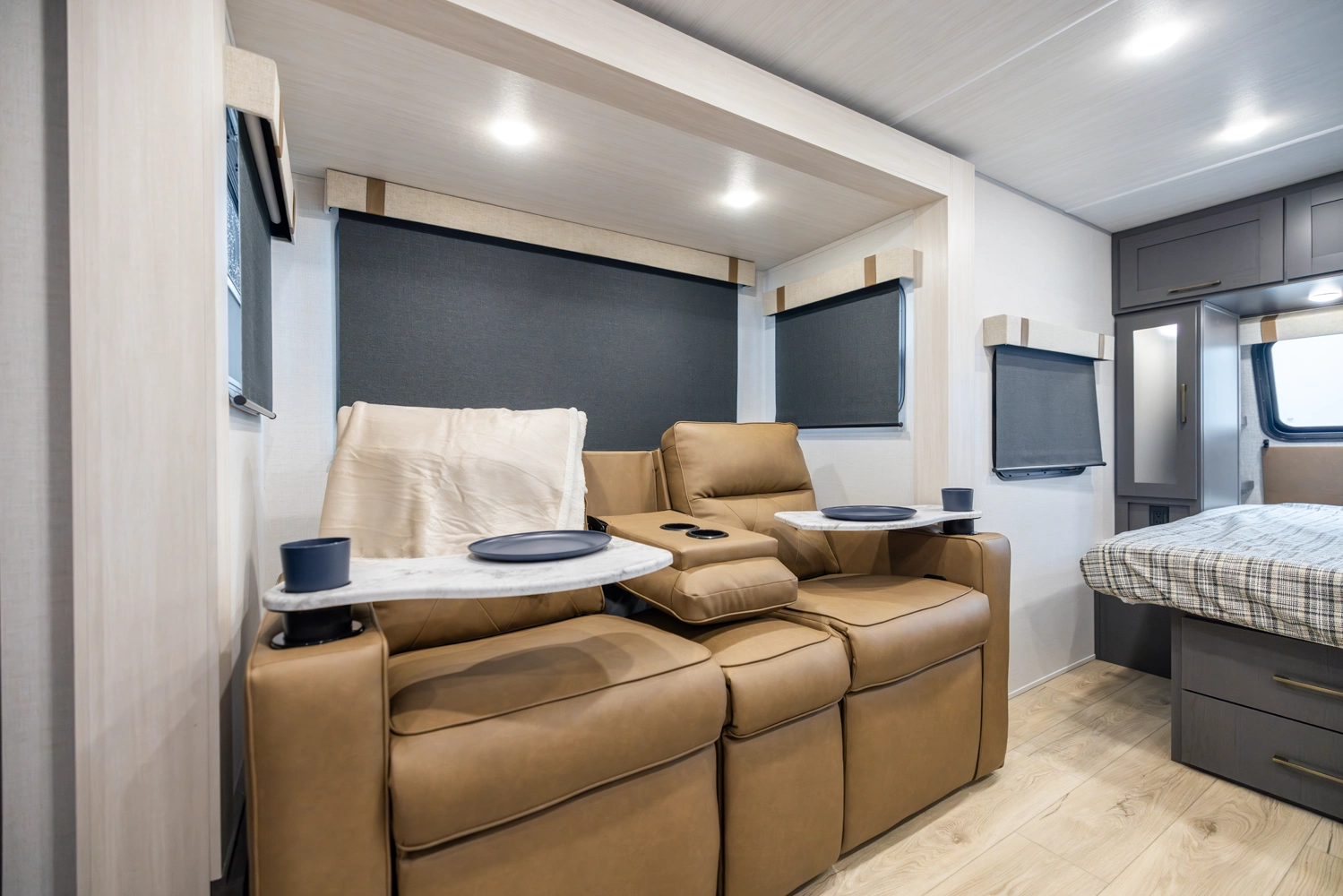 The 19QRB is a feature-rich, tow-friendly travel trailer that blends comfort, function, and durability. A front queen bed provides a cozy retreat with ample storage, while the central kitchen, complete with a large fridge and air fryer microwave to make meal prepping effortless. The slide-out sofa adds spacious comfort for relaxing or entertaining, and the rear bath features an upgraded shower and high-power fan. Built for extended-season use, the 19QRB is ready for adventure.