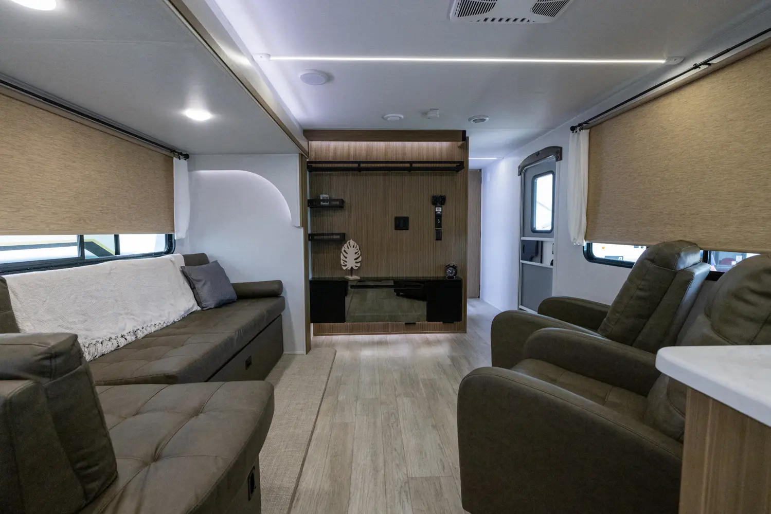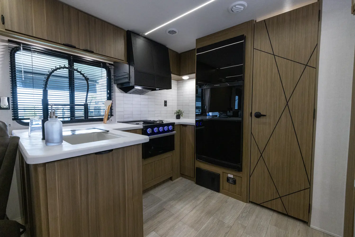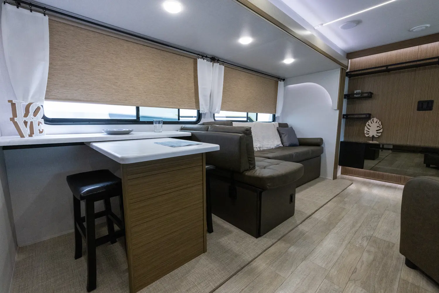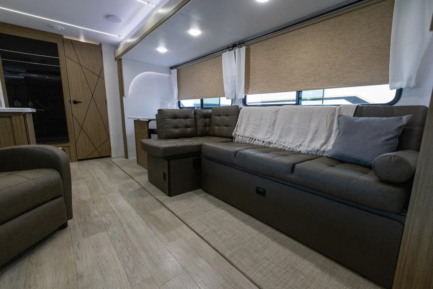 The 27RK stands out with its spacious kitchen and panoramic campsite windows. You will love the Versa-Lounge, which can reconfigure and customize according to your needs—and conveniently below is the Stow N Go Storage! This model also provides a fireplace (heater) and 11 CU. FT. refrigerator making you feel right at home.