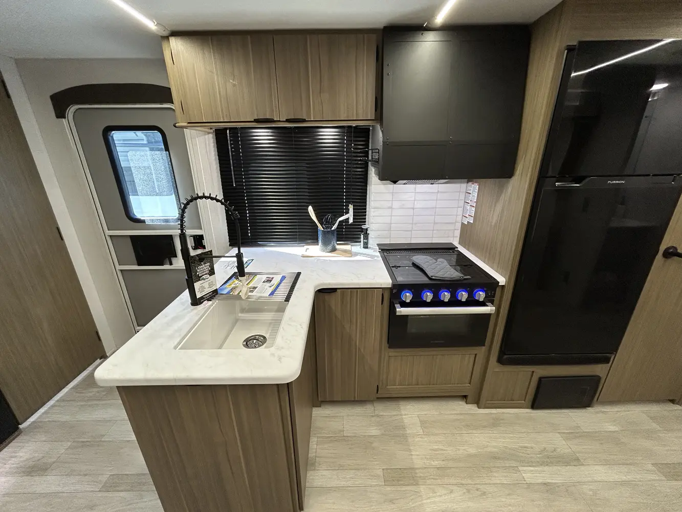 The Salem 28DBUD has one entry and one slide out. Exterior features include: metal or fiberglass exterior, 18' awning and outside kitchen. Interiors features include: bunk beds and front bedroom.