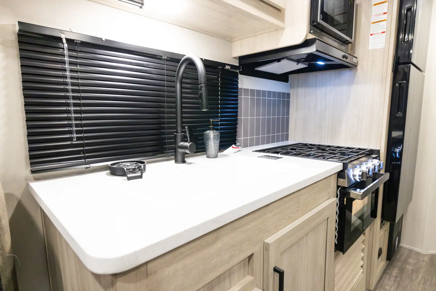 • Solid Surface Countertops in Kitchen Galley (No T-Mold)
