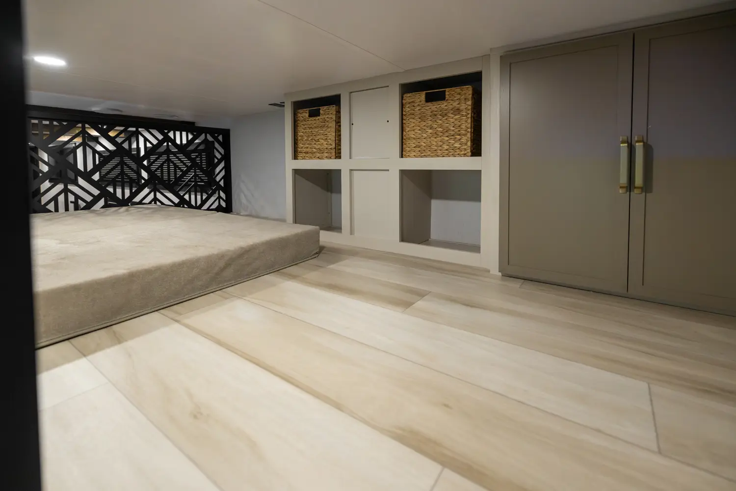 • Leuvered Openings Above Custom King Bed Loft