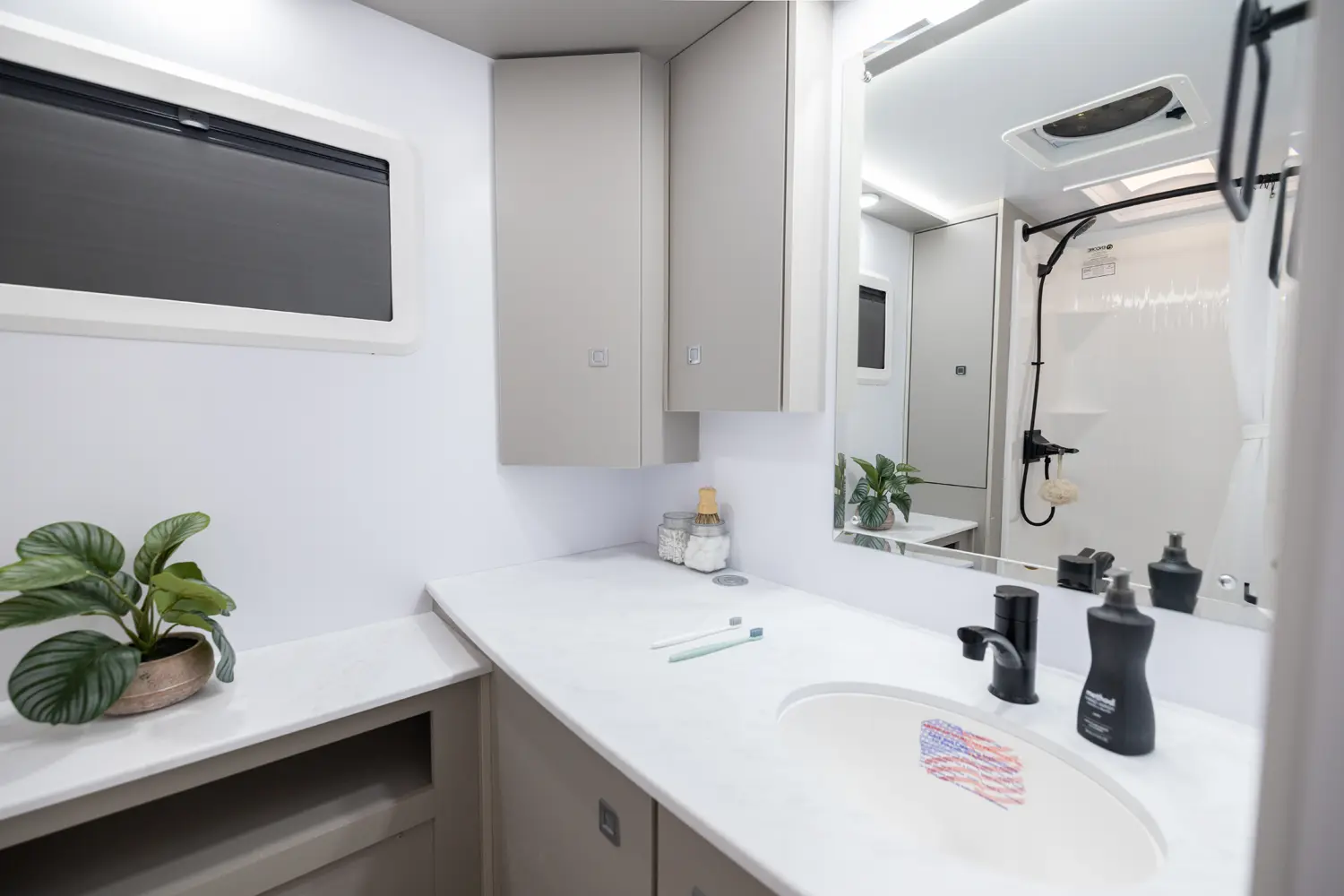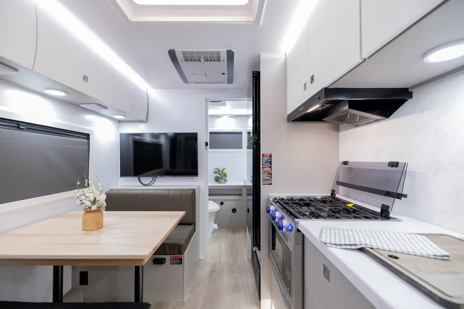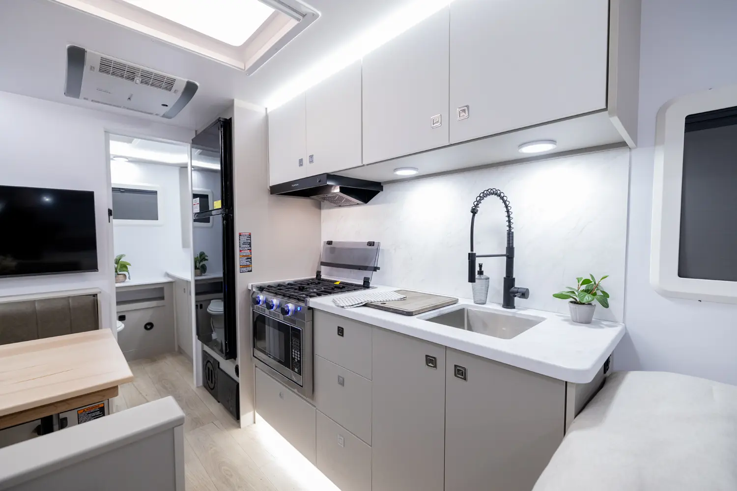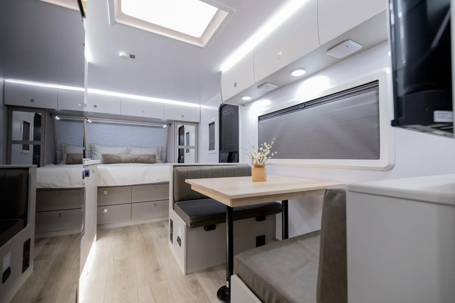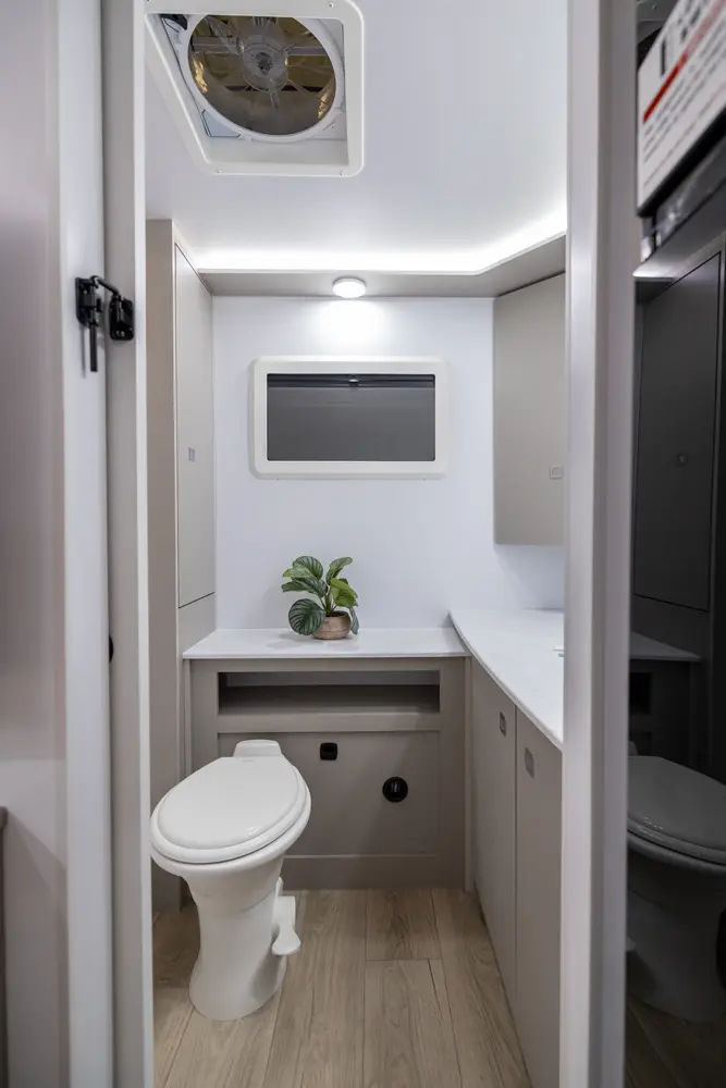 • Truma Upgrade Package: MaxxAir Deuxe Fan, Heated Underbelly, Truma Vario Heat, Truma Recirculating Aquago, and Truma Aventa A/C