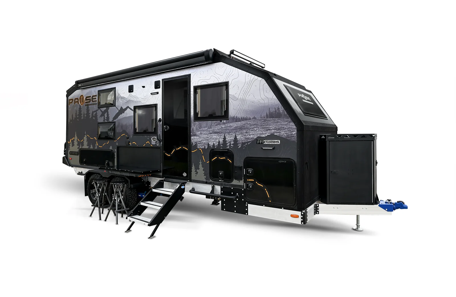 Bring the whole family along with this floorplan! A full size queen bed on the front of this trailer, along with two bunk beds in the rear grants comfortable sleeping for everyone. Make sure you get all your work done while on the road with an entertainment center and a desk below you can utilize for a work station. Cooking can be done with ease on the interior, or exterior of this floorplan. Exterior storage can be found in the rear garage and below the bottom bunk bed on the exterior.