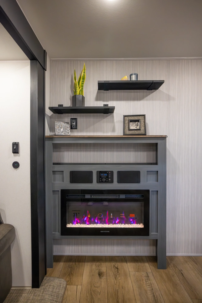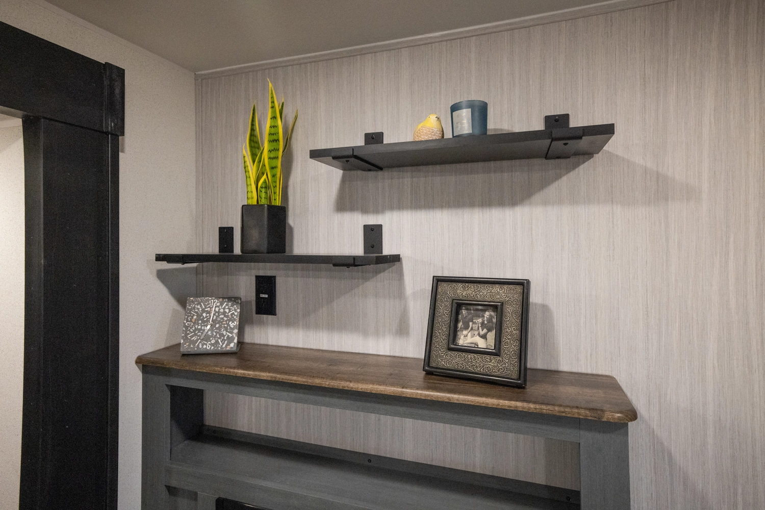 This rear bunk travel trailer provides great space for you and all of your family. With three slides, all on one side of the unit, it will grant you and the guests room everywhere you go. The L shaped countertop in the kitchen gives you the ability to entertain without feeling cramped. The front bedroom has a slide out containing a bed, along with a deep closet. Furthermore, you are provided with a great deal of natural light through out with windows in every room.