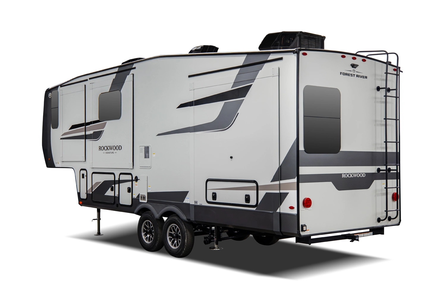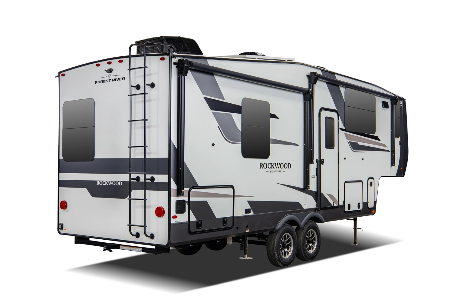 Experience the spacious and smart design of the Rockwood 290SFK fifth wheel. This full profile floor plan features a versatile front kitchen with 86" interior height, abundant counter space and storage, a comfortable living area with theater seating and entertainment center, in a private king size bedroom. With slide outs to expand your space, residential-style comforts throughout, and quality construction, the 290SFK makes every trip relaxing and enjoyable.