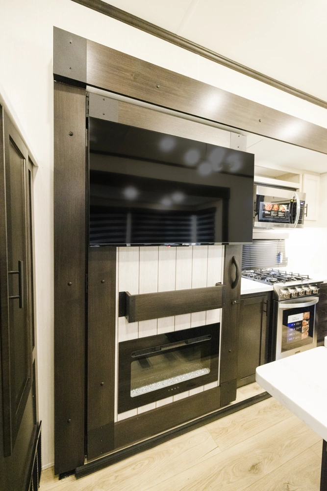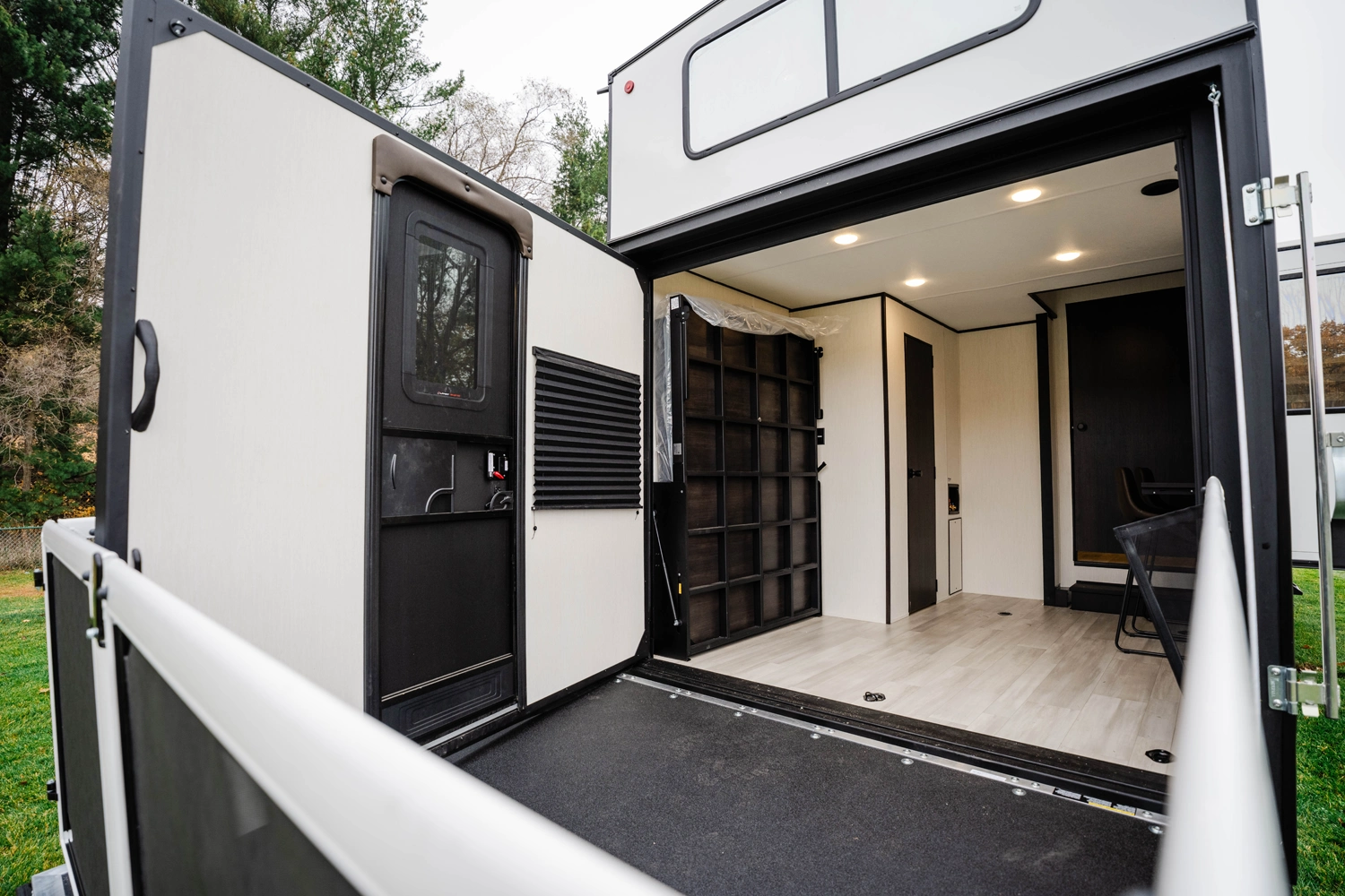 The Rogue Store defies traditional categorization, blending the best elements of travel trailers, fifth wheels, toy haulers, and destination trailers to create a truly unique RV profile. At its core lies our fully insulated hinged rear wall. This innovation transforms the rear garage into a genuinely multifunctional zone—shifting seamlessly from a cargo bay for your toys to a comfortable second bedroom, a spacious living area, or secure storage while you are away.
