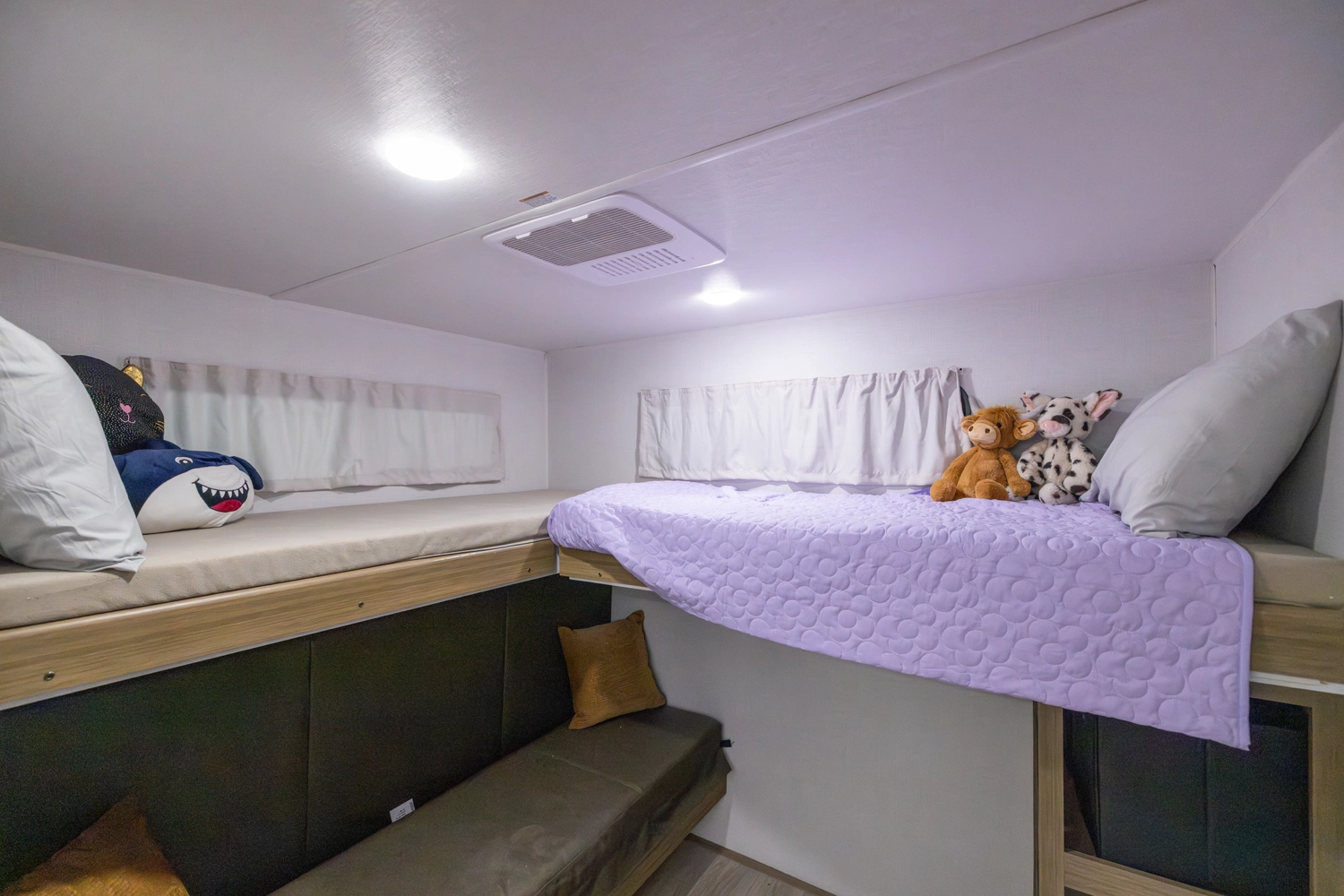 The 29VBUD is a versatile bunkhouse with lots of space for everyone to come along. The front bedroom is designed for a good night's sleep, while the rear bedroom provides the MOST versatile bunk room with the Versa-Bunks and Versa-Queen. Versatility does not stop there as this unit also has the Versa-Lounge and Stow N Go Storage. The well-equipped kitchen and walk-in pantry add the finishing touches to this awesome floorplan.