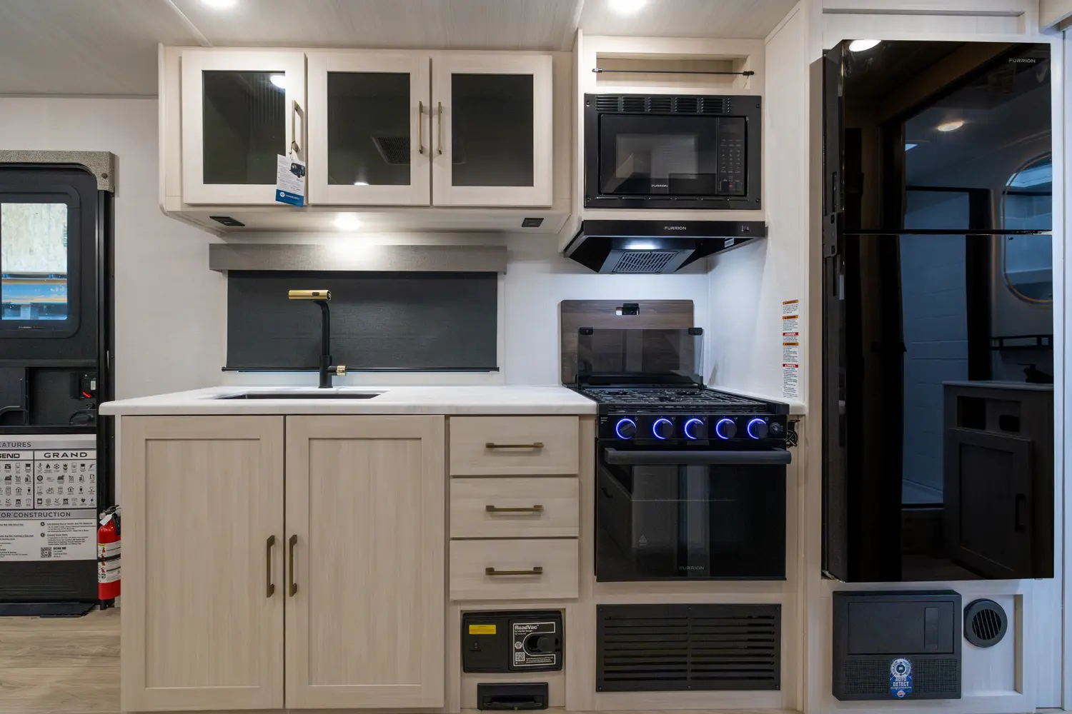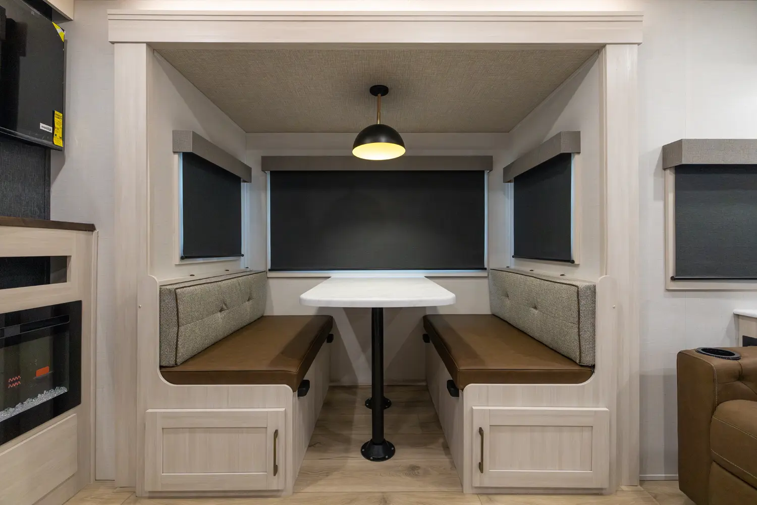 Sleeps up to 4-6. Need tow vehicle rated at 5800 lbs. or more. This self contained Destination camper is very intelligently laid out and spacious, featuring; a deep dinette slide-out, with jackknife sofa or optional Exclusive TSS tucked perfectly on the bedroom privacy wall. The washroom has tremendous storage as does the walk in pantry! And if outside is calling, the 252RBLE has our outside cookhouse kitchen, second to none!