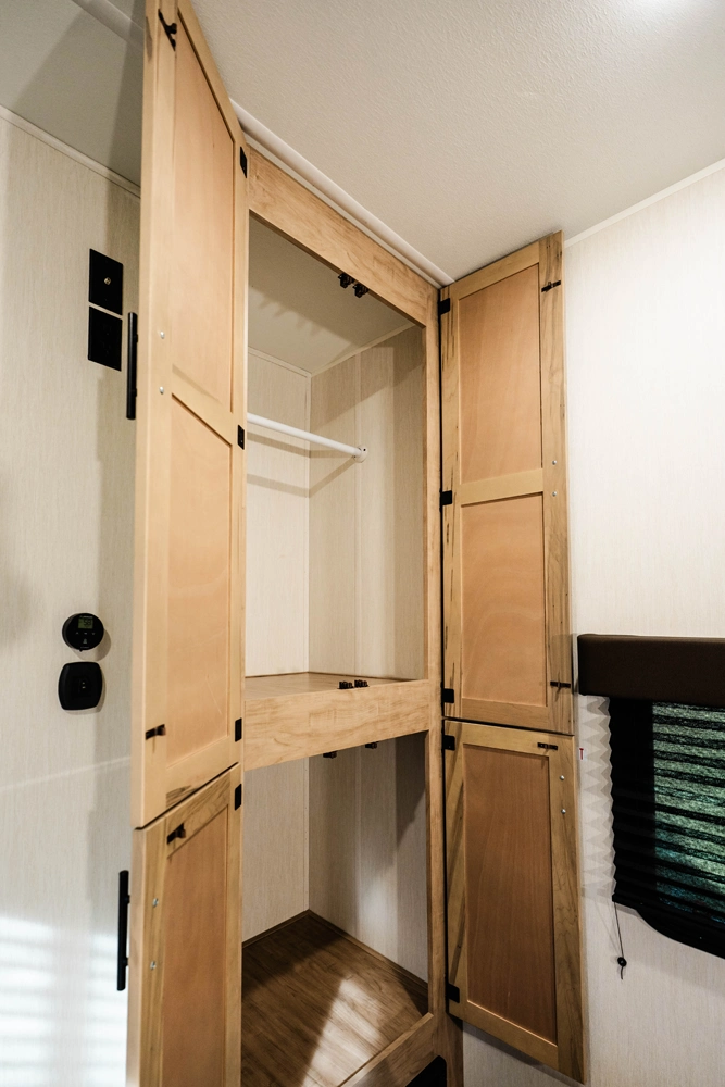 • Blackout Glass, Safety Slam, Friction Hinge Entry Door with Window and Shade Prep (N/A on LP models)