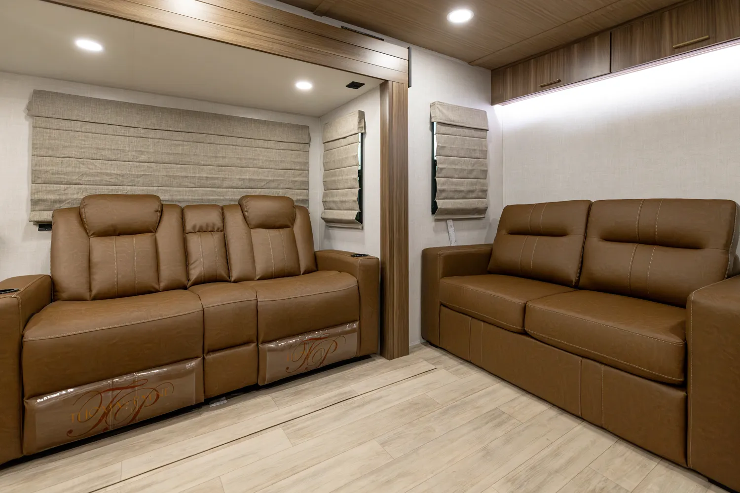 • True Flush Floor Slideouts with Fabric-Backed Shaw Linoleum